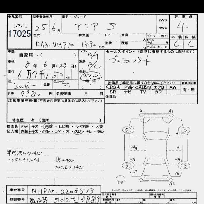 TOYOTA AQUA 2013 г., лот № 17025