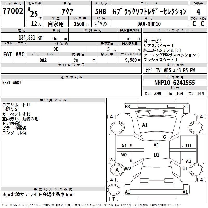 TOYOTA AQUA 2013 г., лот № 77002