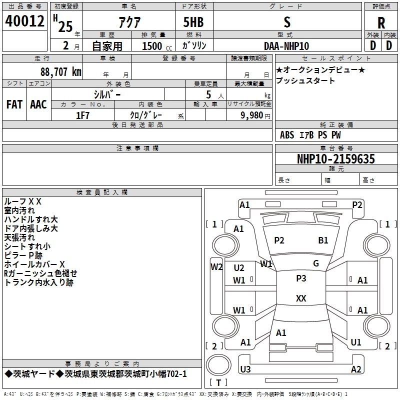 TOYOTA AQUA 2013 г., лот № 40012