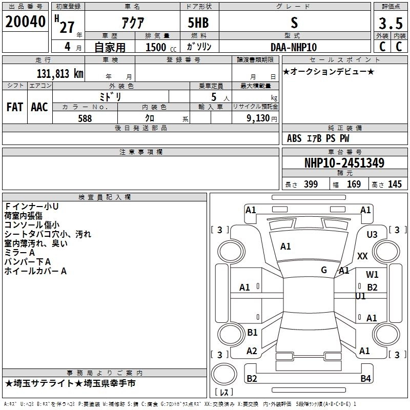 TOYOTA AQUA 2015 г., лот № 20040