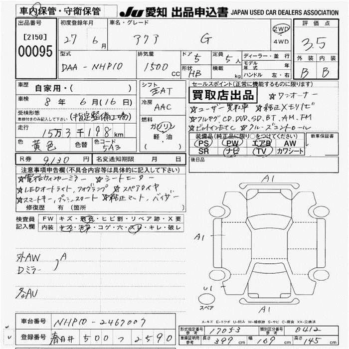TOYOTA AQUA 2015 г., лот № 95