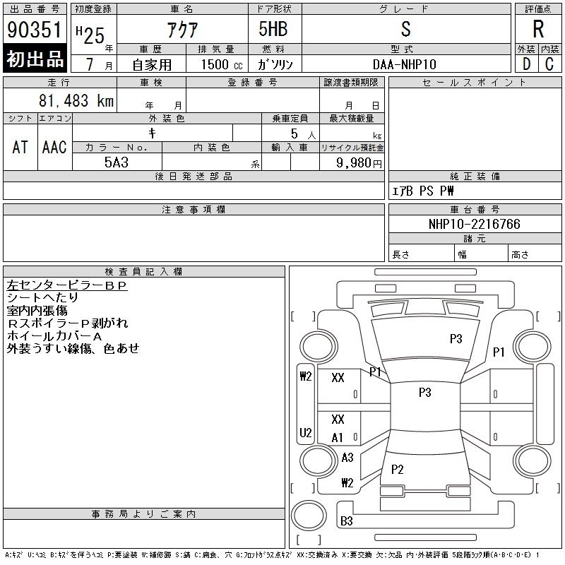 TOYOTA AQUA 2013 г., лот № 90351