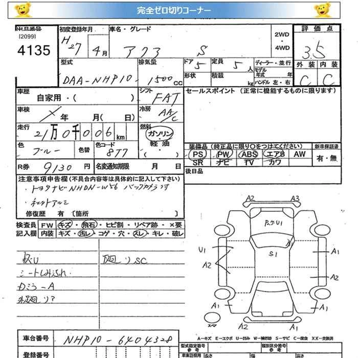 Стартовая цена авто на аукционе 0 ¥