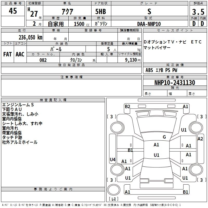 TOYOTA AQUA 2015 г., лот № 45