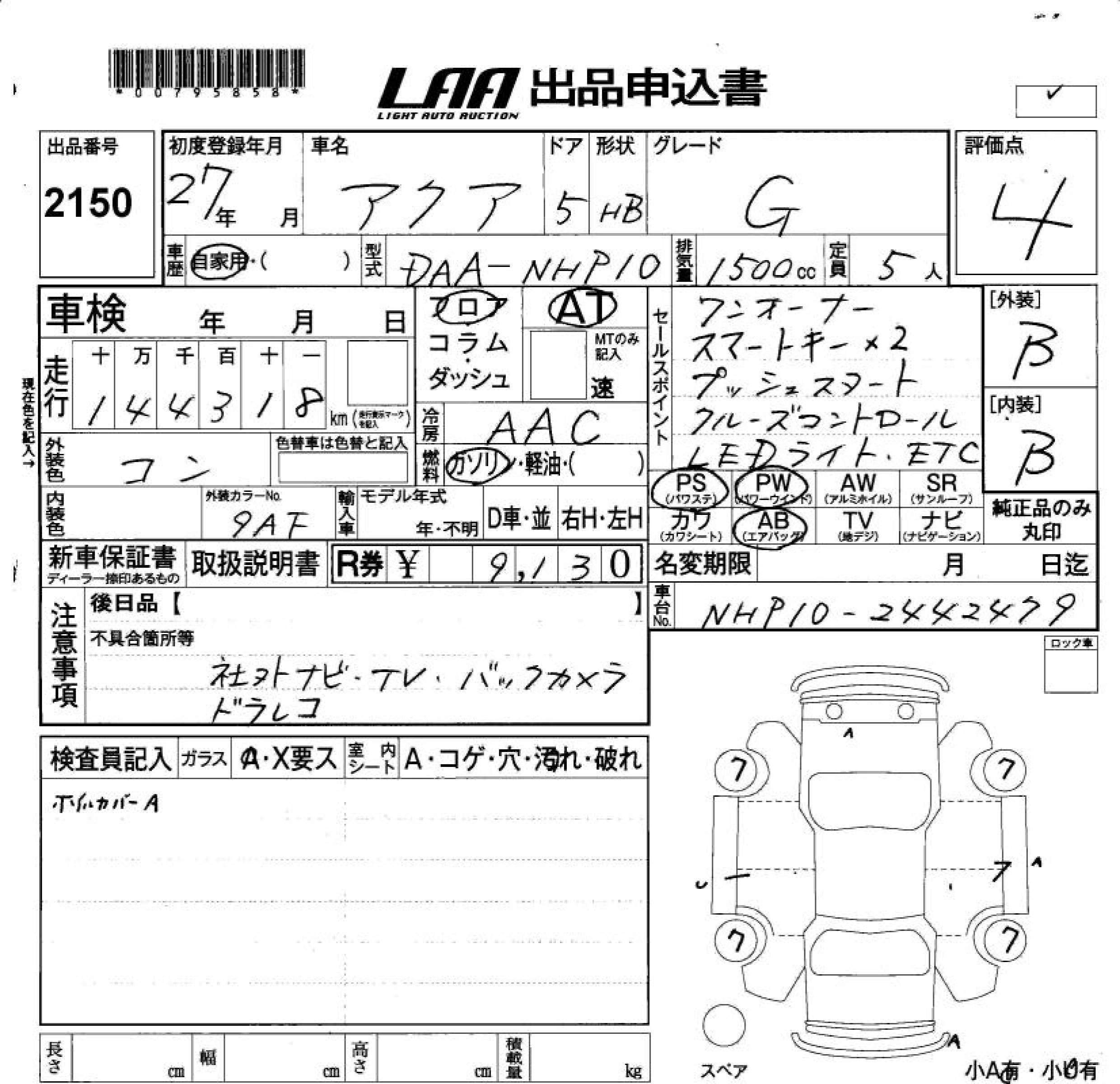 Статус не продан Лот 2150 Аукцион LAA Okayama Дата аукциона 20.03.2026