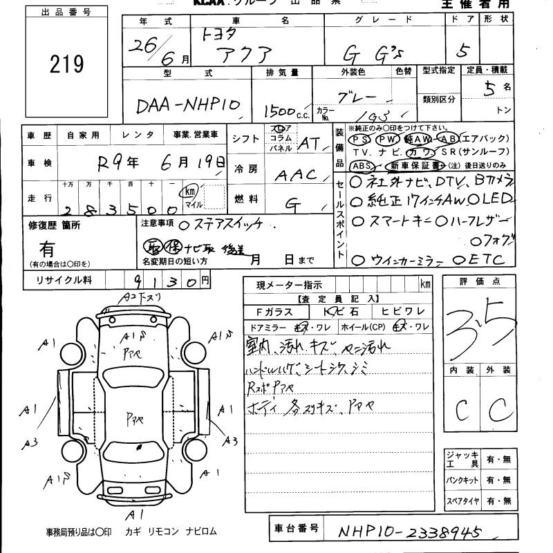 TOYOTA AQUA 2014 г., лот № 219