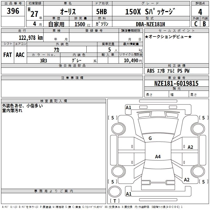 TOYOTA AURIS 2015 г., лот № 396