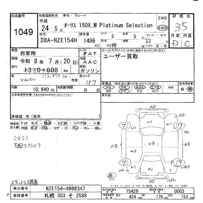 Статус продан Лот 1049 Аукцион JU Hokkaido Дата аукциона 23.01.2026