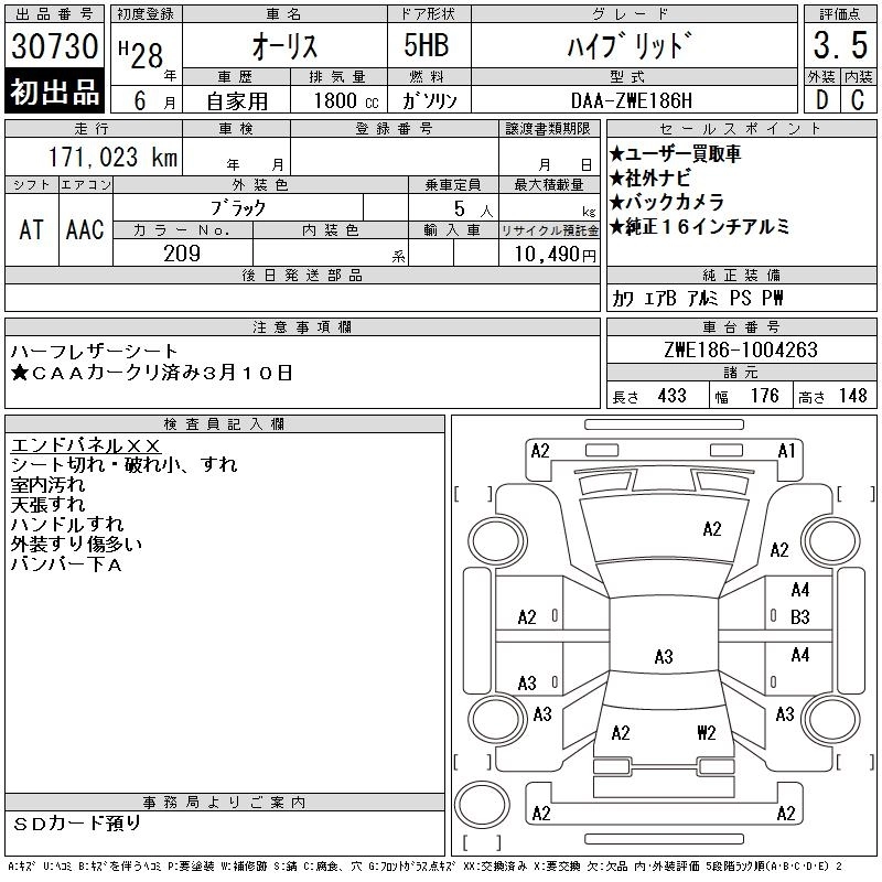 Статус выставлен на аукцион Лот 30730 Аукцион CAA Chubu Дата аукциона 11.03.2026