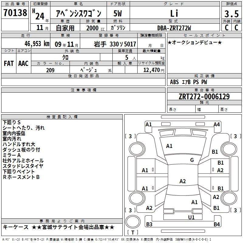 TOYOTA AVENSIS WAGON 2012 г., лот № 70138