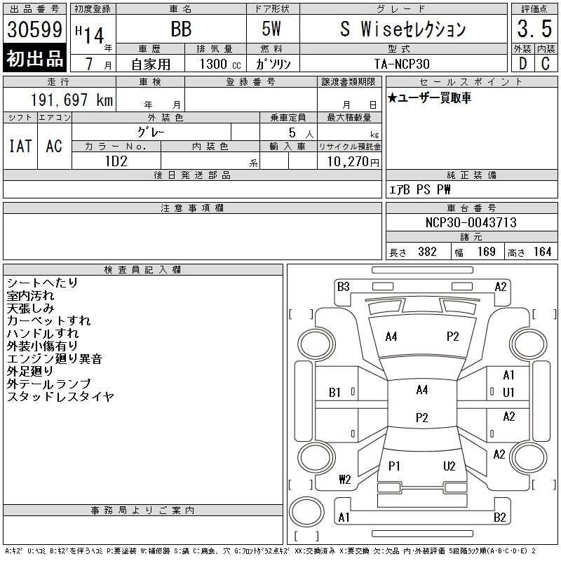 TOYOTA BB 2002 г., лот № 30599