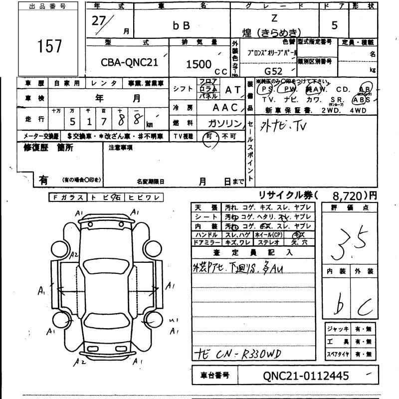 Итоговая цена авто на аукционе 376 000 ¥