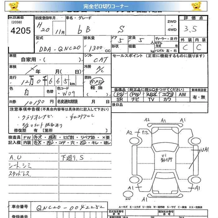 Стартовая цена авто на аукционе 0 ¥