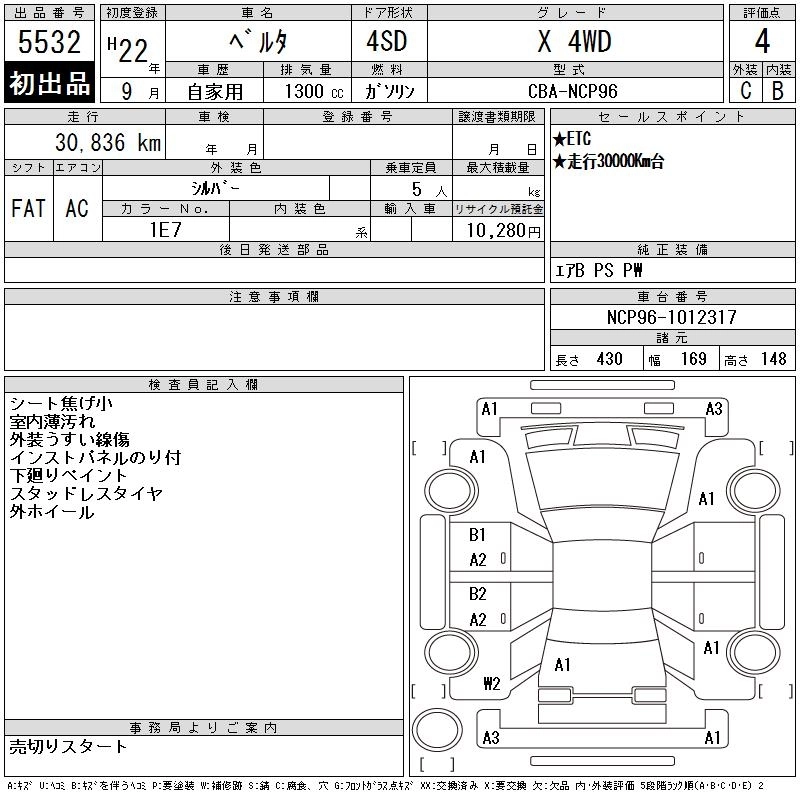 TOYOTA BELTA 2010 г., лот № 5532