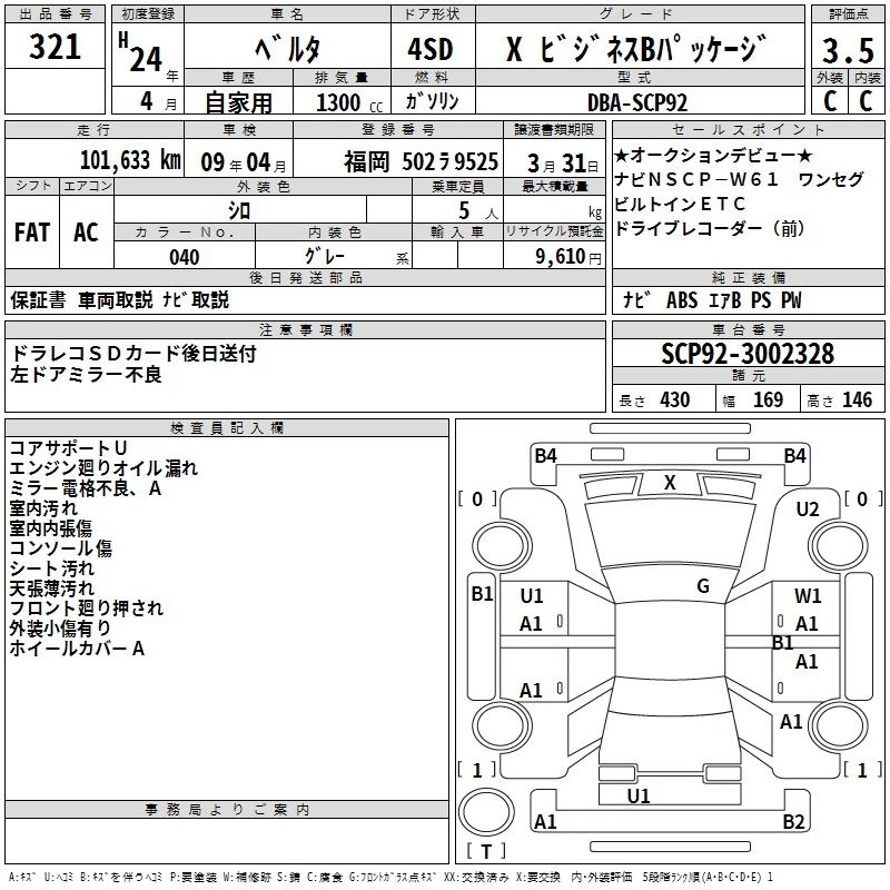 TOYOTA BELTA 2012 г., лот № 321