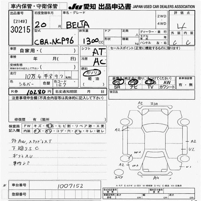 TOYOTA BELTA 2008 г., лот № 30215