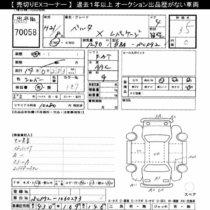 TOYOTA BELTA 2009 г., лот № 70058