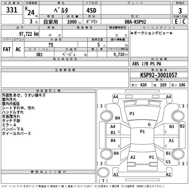 TOYOTA BELTA 2012 г., лот № 331