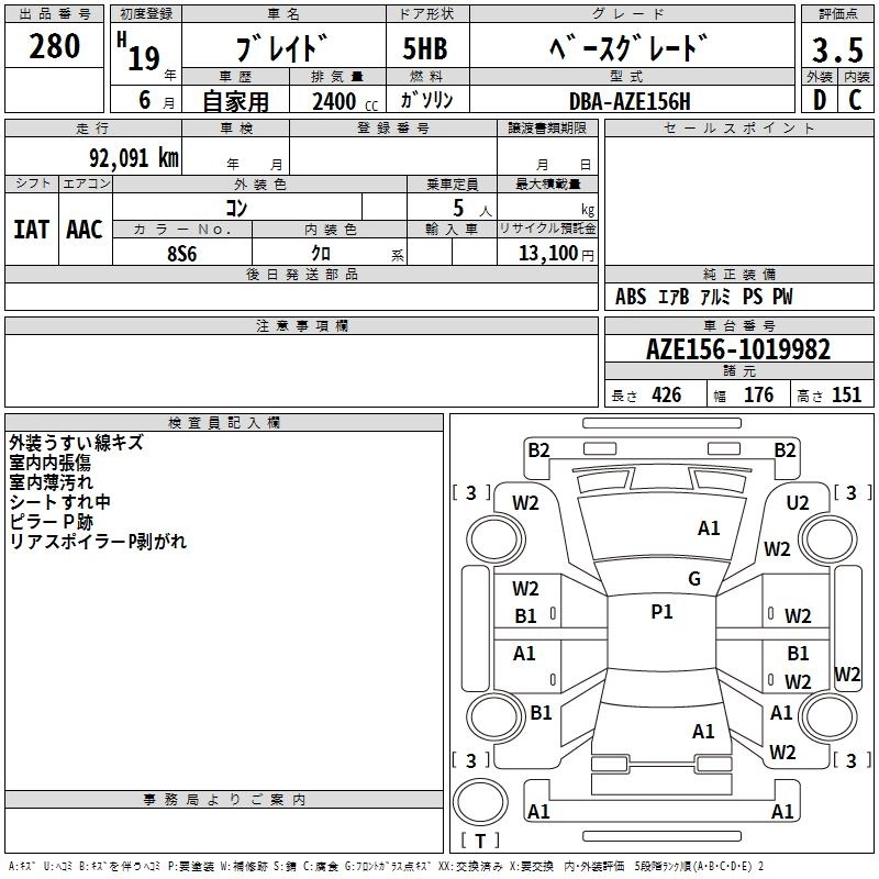 TOYOTA BLADE 2007 г., лот № 280