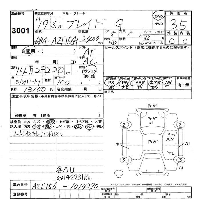 TOYOTA BLADE 2007 г., лот № 3001