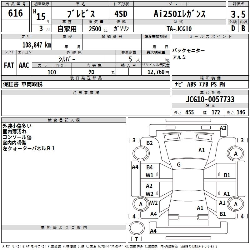 Год выпуска2003 Пробег 109 000 км КузовJCG10 КомплектацияAI250 ELEGANCE