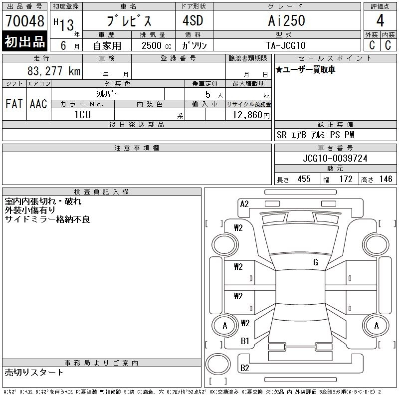 Статус выставлен на аукцион Лот 70048 Аукцион CAA Gifu Дата аукциона 10.03.2026