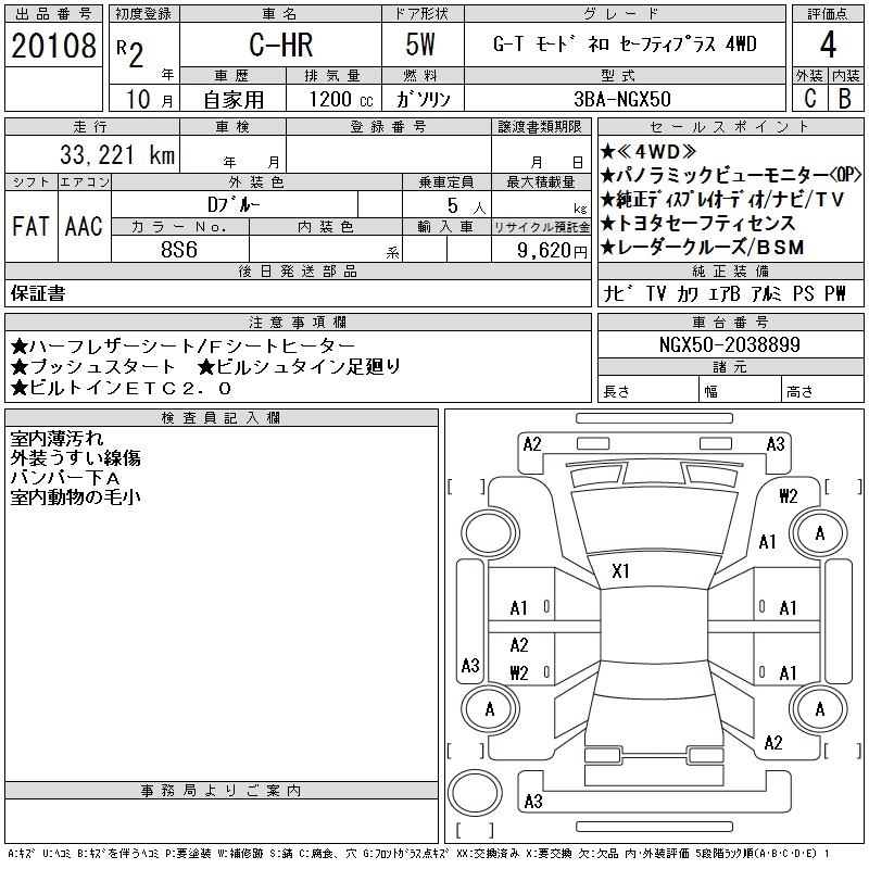 Год выпуска2020 Пробег 33 000 км КузовNGX50 КомплектацияG-T MODE NERO SAFETY 4WD