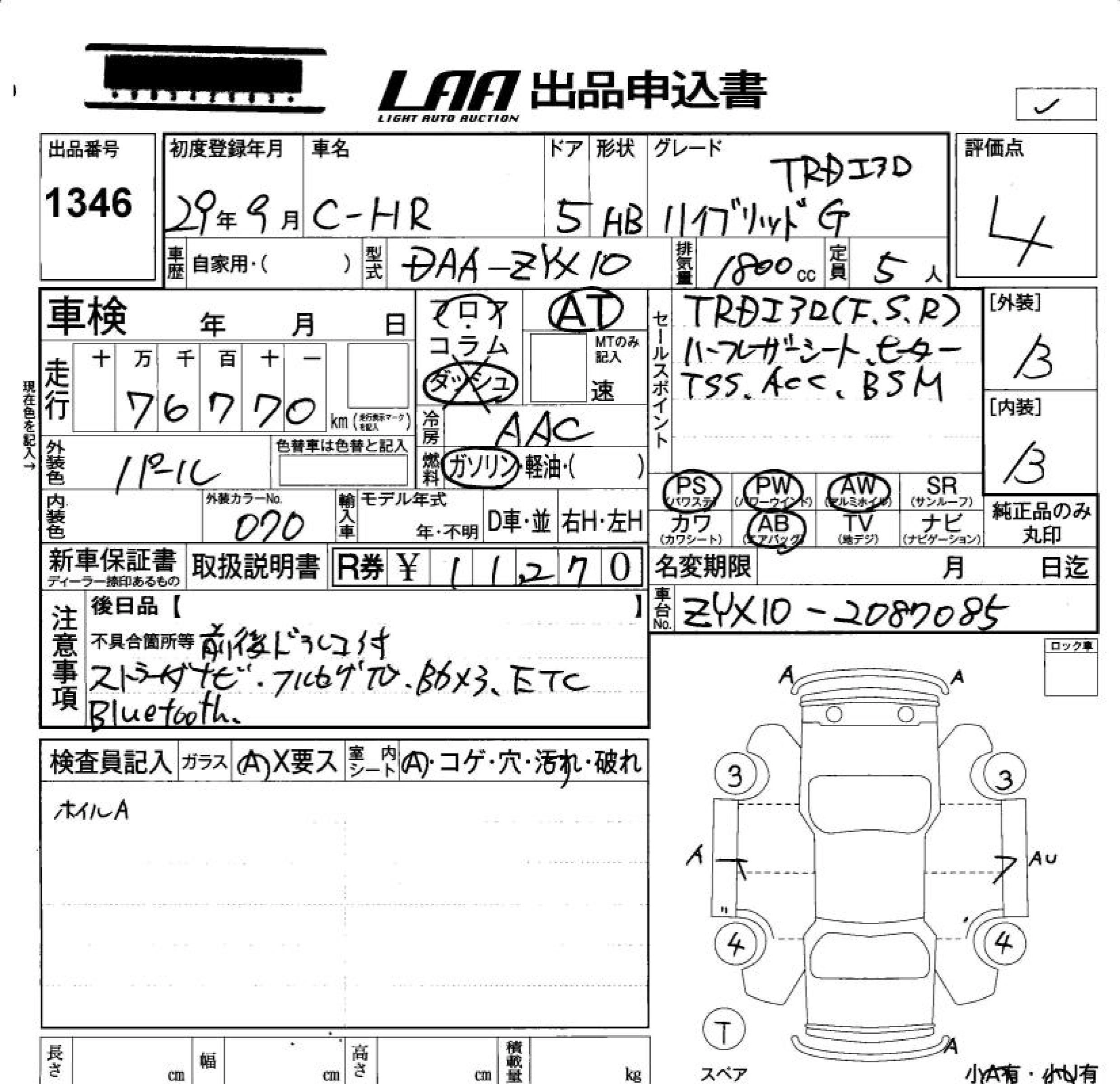 TOYOTA C-HR 2017 г., лот № 1346
