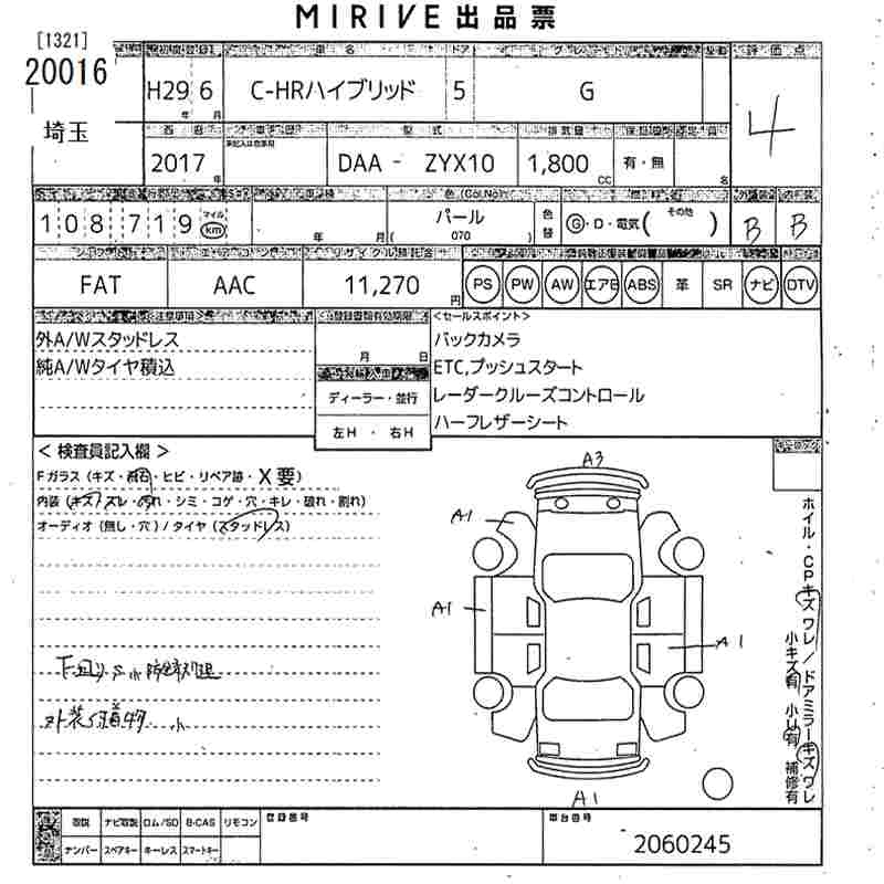 TOYOTA C-HR 2017 г., лот № 20016