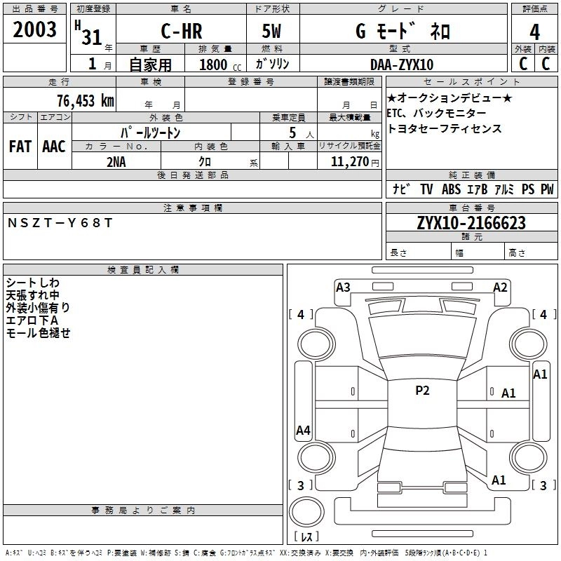 Статус выставлен на аукцион Лот 2003 Аукцион TAA Chubu Дата аукциона 12.03.2026