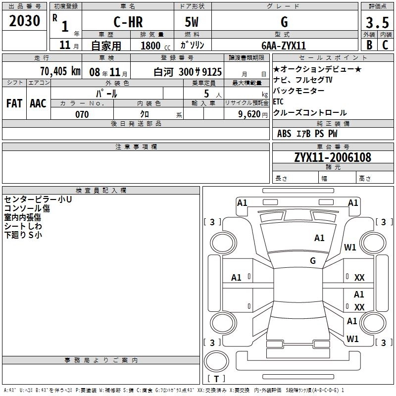 TOYOTA C-HR 2019 г., лот № 2030