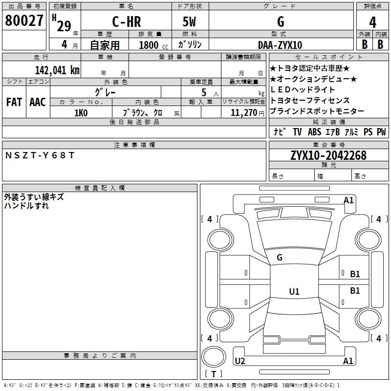 TOYOTA C-HR 2017 г., лот № 80027