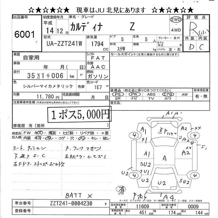 TOYOTA CALDINA 2002 г., лот № 6001