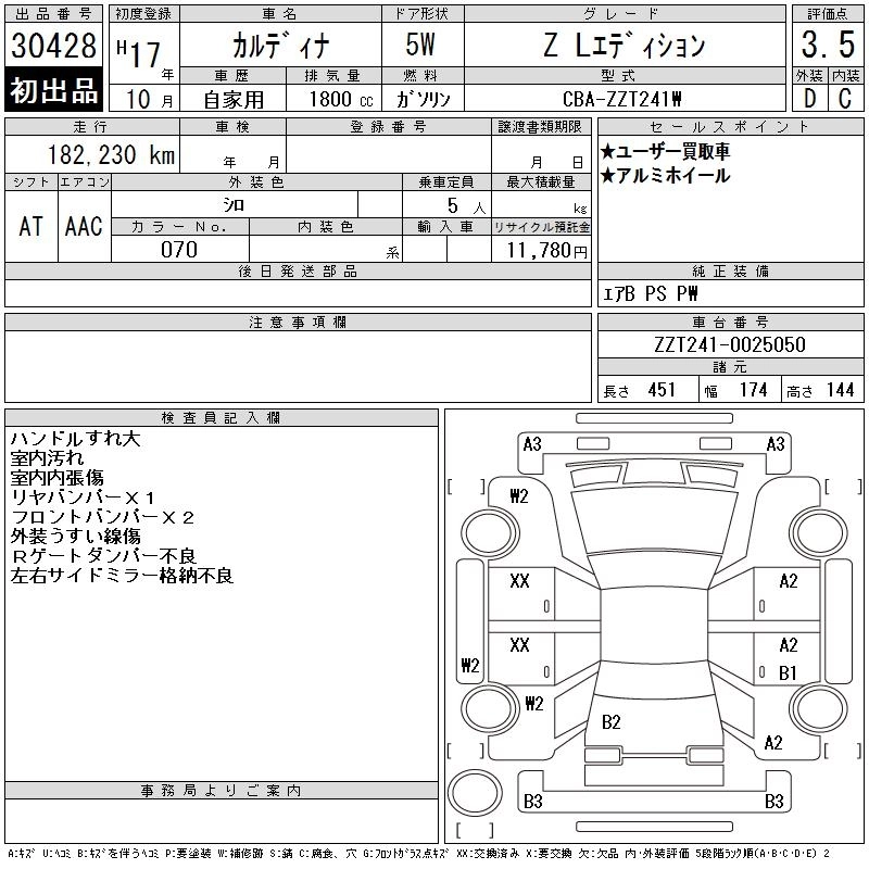 TOYOTA CALDINA 2005 г., лот № 30428