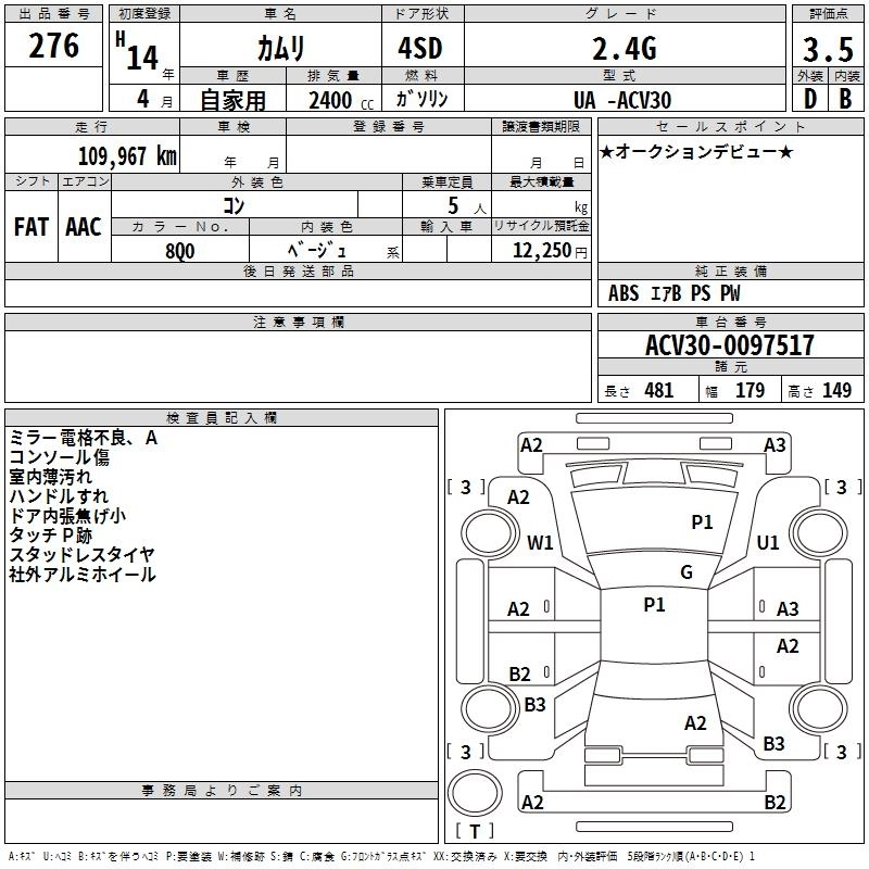 Статус выставлен на аукцион Лот 276 Аукцион TAA Chubu Дата аукциона 12.03.2026