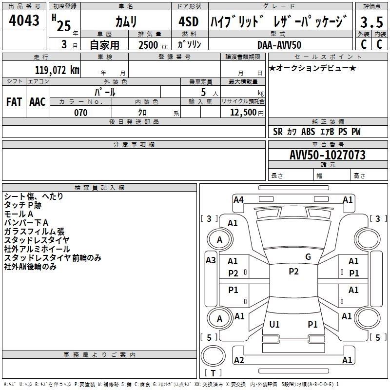 Статус выставлен на аукцион Лот 4043 Аукцион TAA Kantou Дата аукциона 12.03.2026