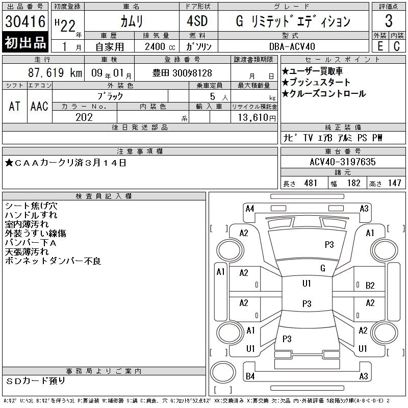 Статус выставлен на аукцион Лот 30416 Аукцион CAA Chubu Дата аукциона 18.03.2026
