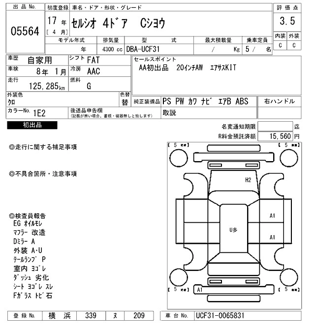 Год выпуска2005 Пробег 125 000 км КузовUCF31 КомплектацияC USE