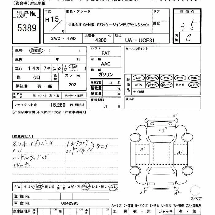 Год выпуска2003 Пробег 147 000 км КузовUCF31 КомплектацияC USE F-PKG INTERIOR SELECTION