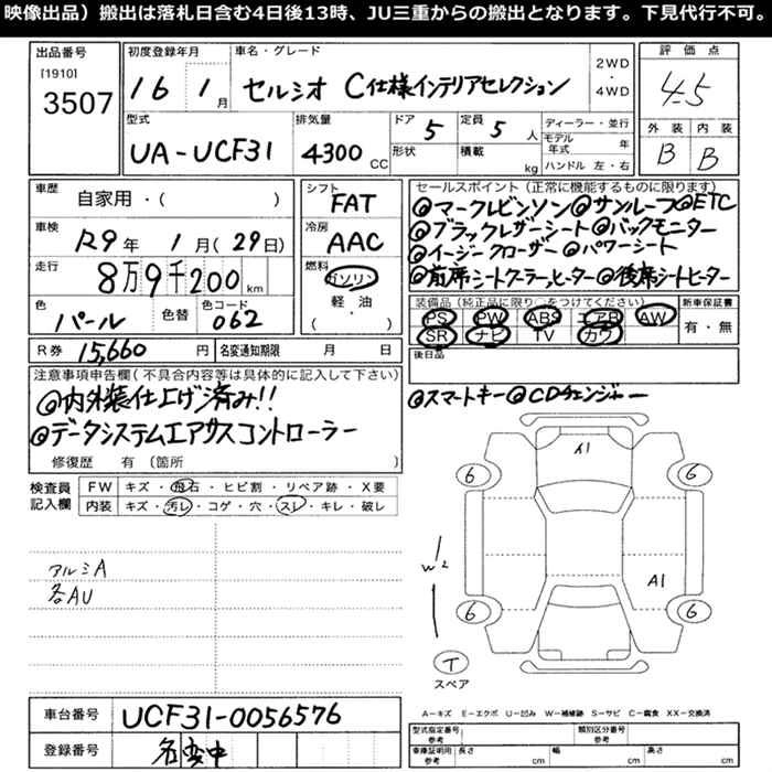 Год выпуска2004 Пробег 89 000 км КузовUCF31 КомплектацияC SPEC INTERIOR SELECTION