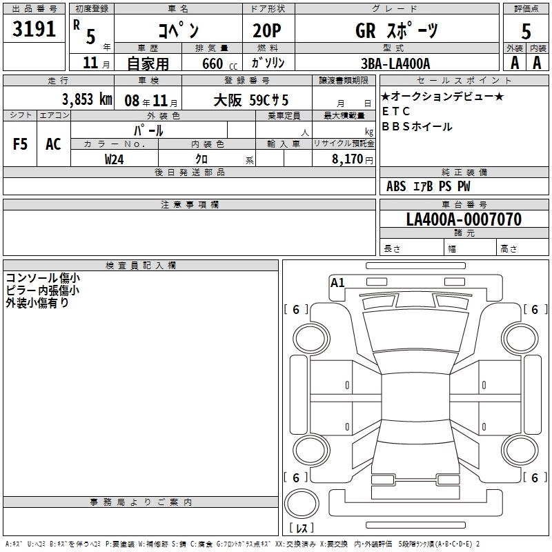 TOYOTA COPEN 2023 г., лот № 3191