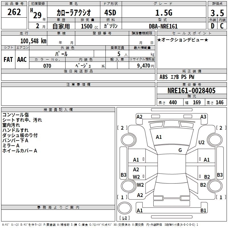 TOYOTA COROLLA AXIO 2017 г., лот № 262