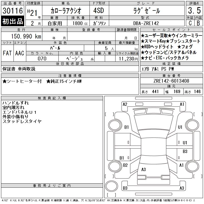 TOYOTA COROLLA AXIO 2009 г., лот № 30116