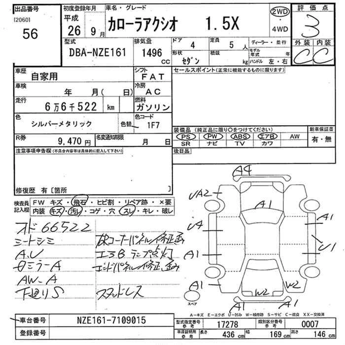 TOYOTA COROLLA AXIO 2014 г., лот № 56