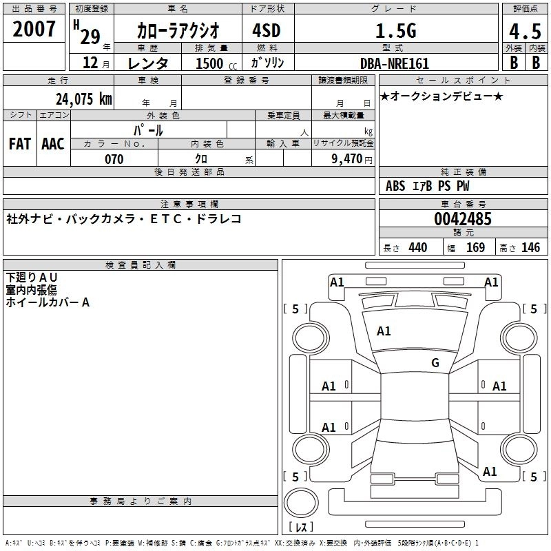 TOYOTA COROLLA AXIO 2017 г., лот № 2007