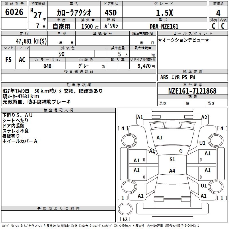 TOYOTA COROLLA AXIO 2015 г., лот № 6026