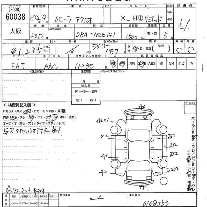TOYOTA COROLLA AXIO 2010 г., лот № 60038
