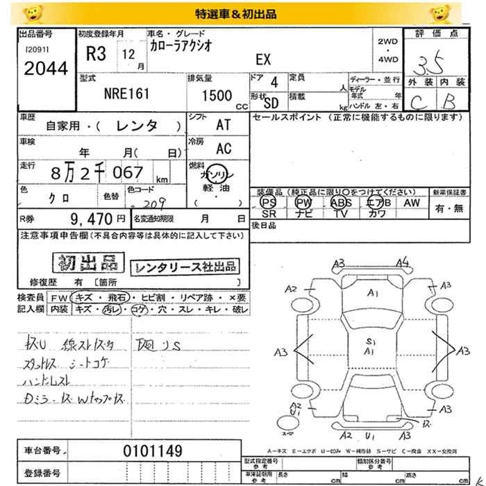 TOYOTA COROLLA AXIO 2021 г., лот № 2044