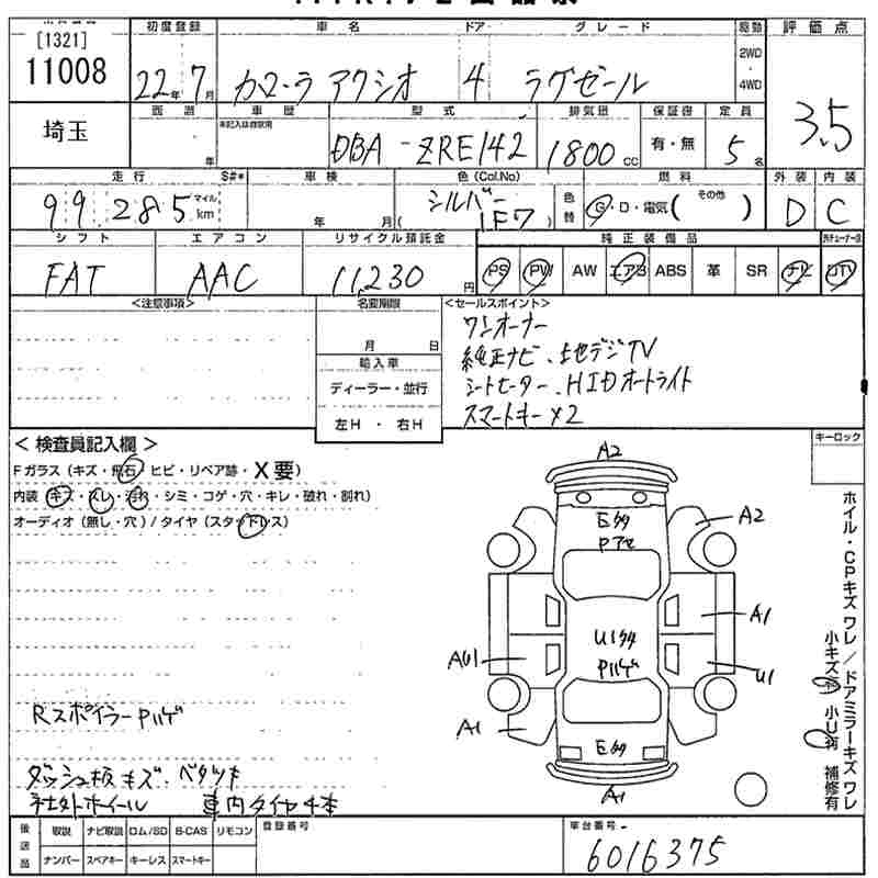 TOYOTA COROLLA AXIO 2010 г., лот № 11008