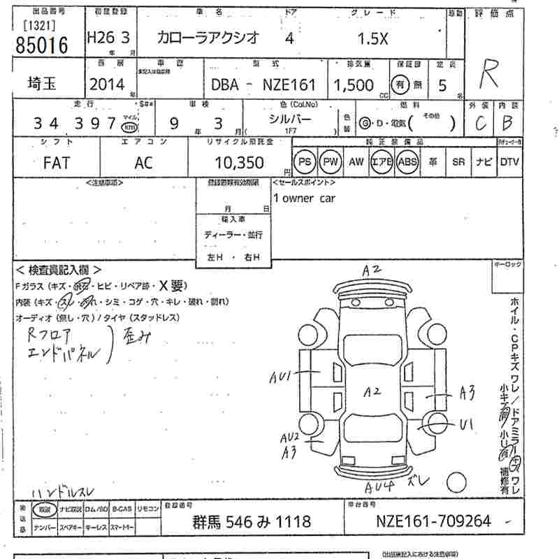 TOYOTA COROLLA AXIO 2014 г., лот № 85016